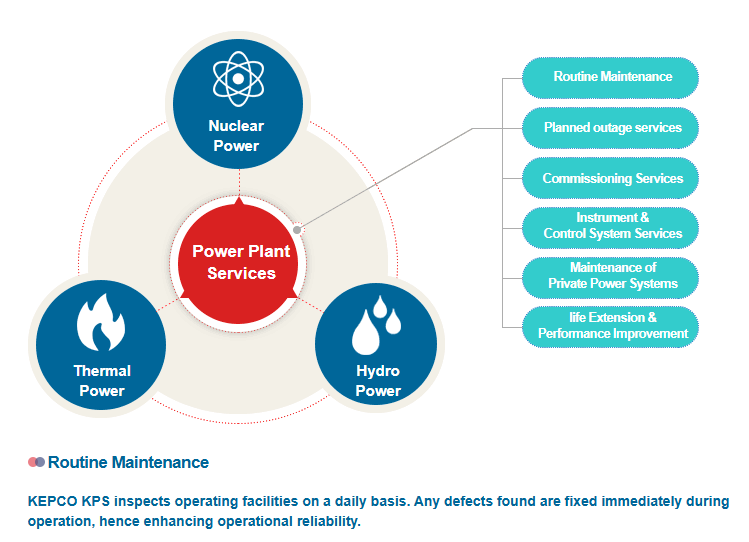 This is the crown jewel. KEPCO KPS is the sole entity authorized to perform routine and planned preventive maintenance on all 26 operating nuclear reactors in South Korea, operated by Korea Hydro & Nuclear Power (KHNP). No private contractor can legally compete for this work — it’s a regulatory monopoly rooted in safety requirements and decades of accumulated expertise.